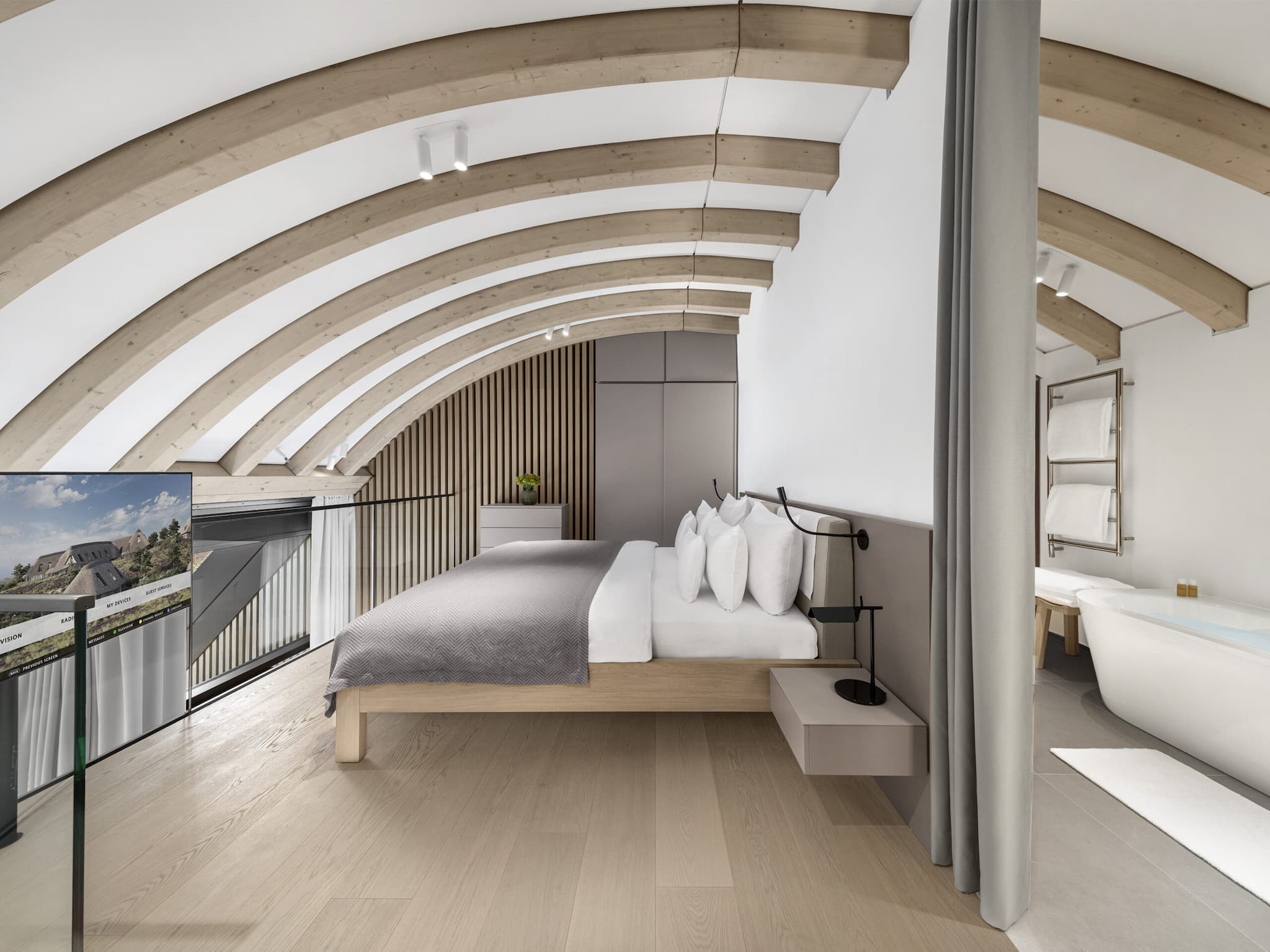 Die Umgebung inspirierte auch die Inneneinrichtung der Räume. Materialien wie Holz, Leder oder Naturstein schaffen eine edle Atmosphäre, in der die Natur mit allen Sinnen erlebbar ist. Ein Design, das durch klare Akzente den idealen Rahmen für Ruhe und Entspannung schenkt, mit zahlreichen Details für ein Höchstmaß an Wohlgefühl.
