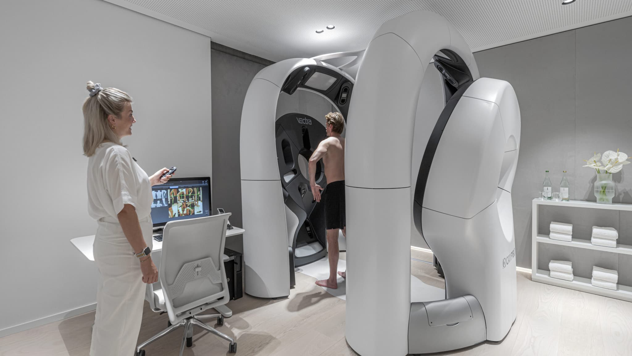 Der Vectra Ganzkörperscanner gilt als State-of-the-Art. Im Lanserhof Sylt lässt sich so in wenigen Sekunden der Körper mithilfe von Aufnahmen durch 96 Kameras aus verschiedenen Perspektiven kartographieren und so die komplette Hautoberfläche in Makroauflösung erfassen. Dank des daraus erstellten 3D-Bildes bleibt keine Hautunregelmäßigkeit durch veränderte Struktur oder Farbton von Pigmenten und Muttermalen unentdeckt. Zudem lassen sich auflichtmikroskopische Bilder in bis zu 200-facher Vergrößerung speichern und mit computergestützter Bildanalyse zusätzlich absichern. Für maximale Sicherheit sollte der Vectra-Scan alle sechs bis 12 Monate erfolgen – am besten textilfrei.