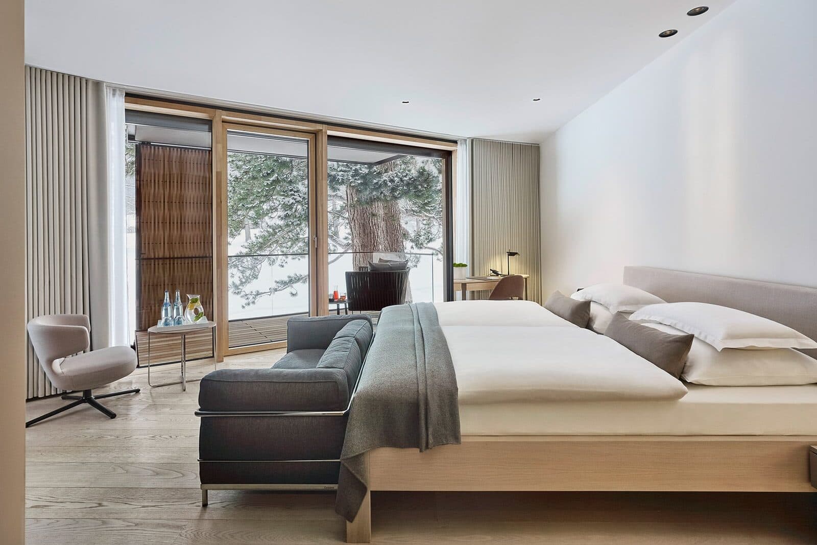 Ca. 50 m² großer Wohn-Schlafbereich mit Balkonterrasse, großzügigem Bad (Badewanne, Doppelwaschbecken, Dusche, getrenntem WC), Parkett, freier WLAN-Internetzugang, Elektrosmog-Freischaltung Lichtdurchflutete helle Räume mit einer harmonischen Farbgestaltung verbinden sich perfekt mit der umgebenden Natur und geben den Ausblick frei auf die herrliche Landschaft.