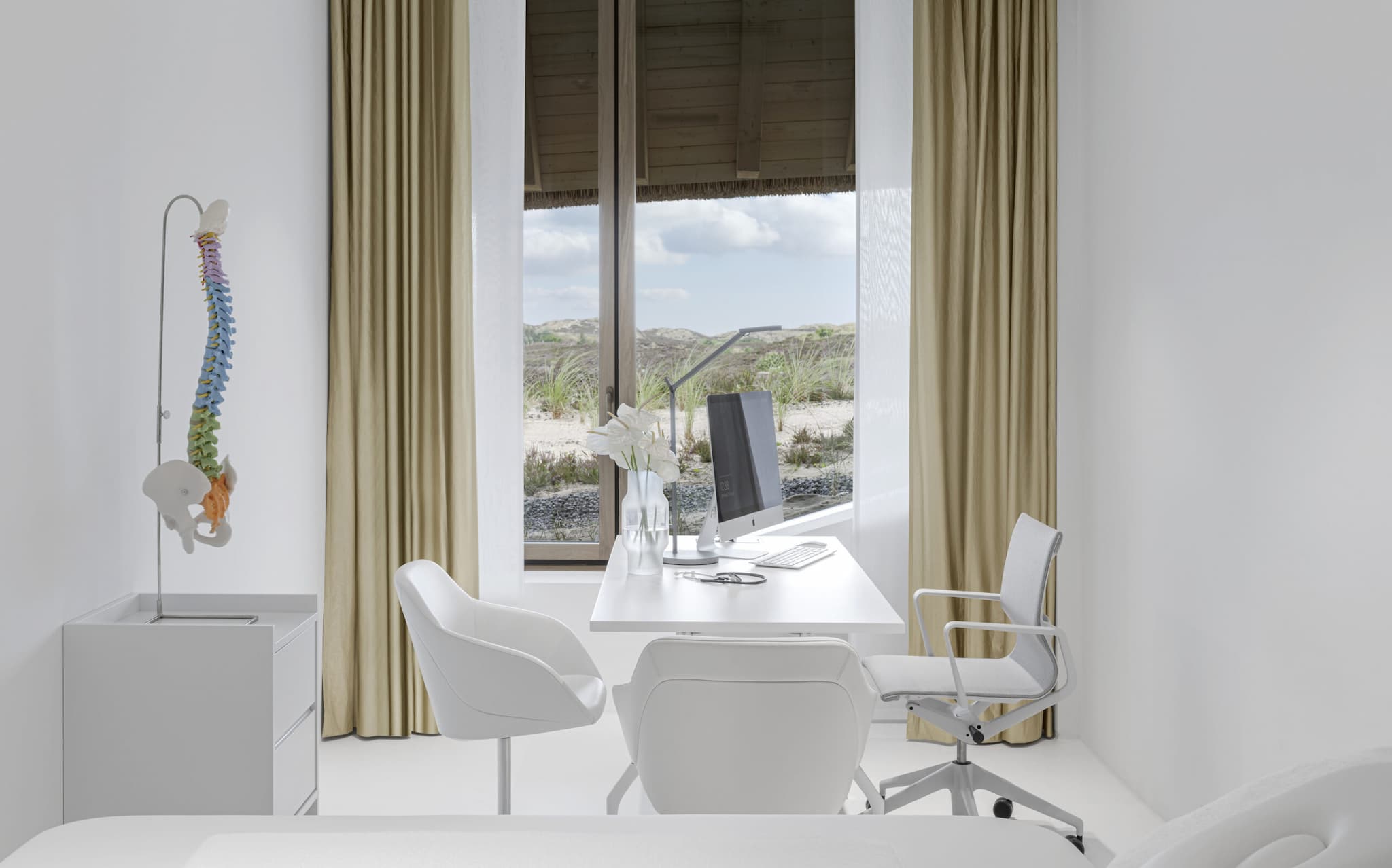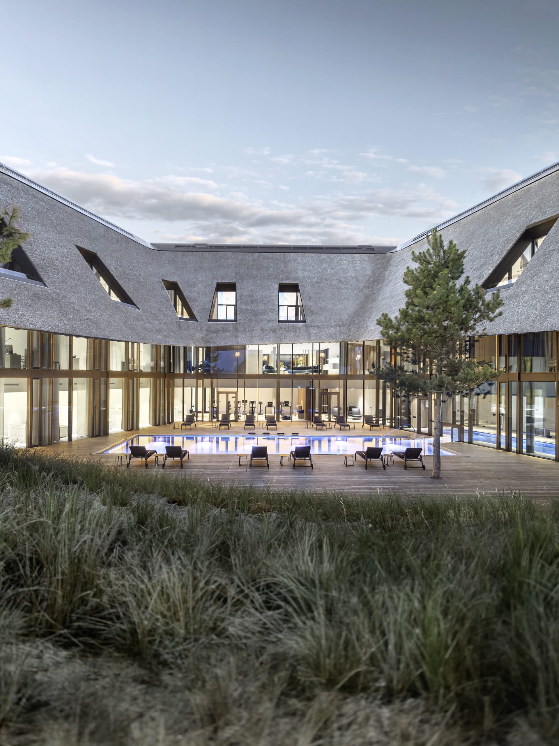Am Lanserhof Sylt erwartet Sie Privatsphäre, Großzügigkeit, Entschleunigung und die Konzentration auf den eigenen Körper. Im Einklang mit der Natur können Sie neue Energie sammeln und sich zurückgezogen erholen. Durch die gesundheitsfördernde Architektur stehen Sie und Ihre ganzheitliche Erholung im Mittelpunkt. Eine reduzierte, zeitlose Formensprache mit harmonischen Räumen, die in ihrer Form und ihren Materialien die umgebende Natur aufgreifen, gibt Ihnen Raum zum Sein. Die fließende Architektur ohne Ecke und Kanten wurde in Form der Dünen gebaut, die Konstellation der Balken an der Decke innerhalb des Gebäudes sollen an einem umgekehrten Schiffsrumpf erinnern.