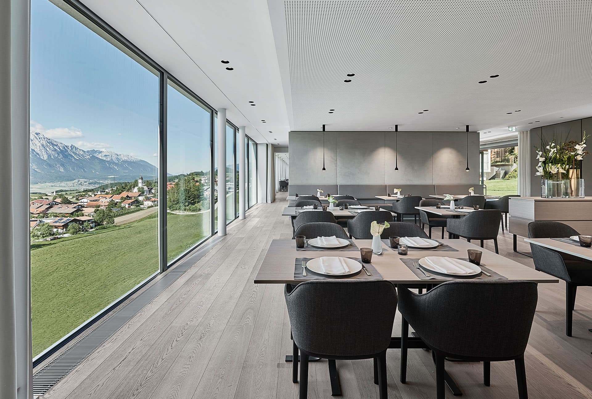 Once you visit us here at Lanserhof, you will be at the centre of everything we do. This principle has been a crucial element in the conception and design of our rooms and suites. Individual, generously proportioned rooms offer plenty of space for your own private retreat. At Lanserhof, elegance and a sense of well-being create a true home-from-home. This is complemented by a warm, friendly atmosphere, characterised by the colours of the sky, lakes, and mountains and the intimate interplay of man and nature. Expansive panoramic windows provide uninhibited views of the surrounding landscape.
